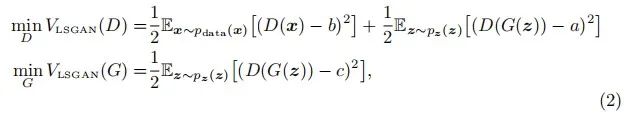 LSGAN的迭代算法如上图所示,与Traditional GAN有较大不同,将原先的F散度改成了最小二乘损失函数。原先最小化GAN的目标函数会出现梯度的消失,这使得很难更新生成器。LSGAN可以缓解这个问题,因为LSGANs根据样本到决策边界的距离来惩罚样本,从而产生更多的梯度来更新生成器。另外,与常规GAN几乎不会丢失决策边界正确一侧的样本不同,即使样本正确分类,LSGAN也会对其进行惩罚,有效缓解了梯度消失的问题。