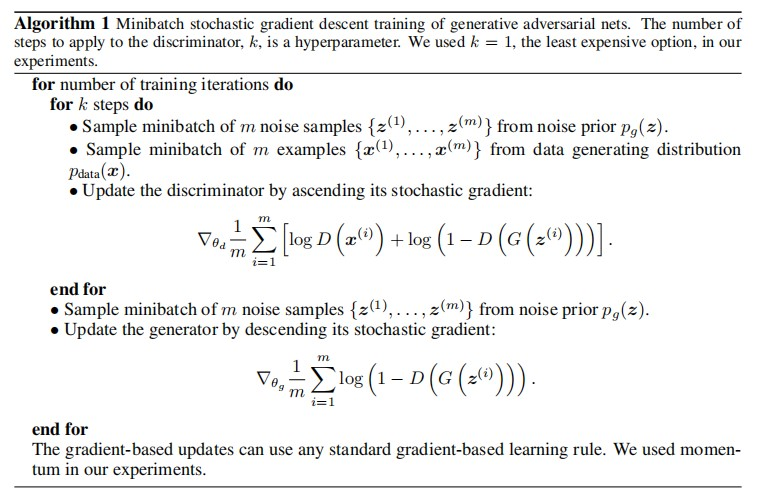 迭代k次(k是超参,即训练鉴别器k次,再训练生成器1次)