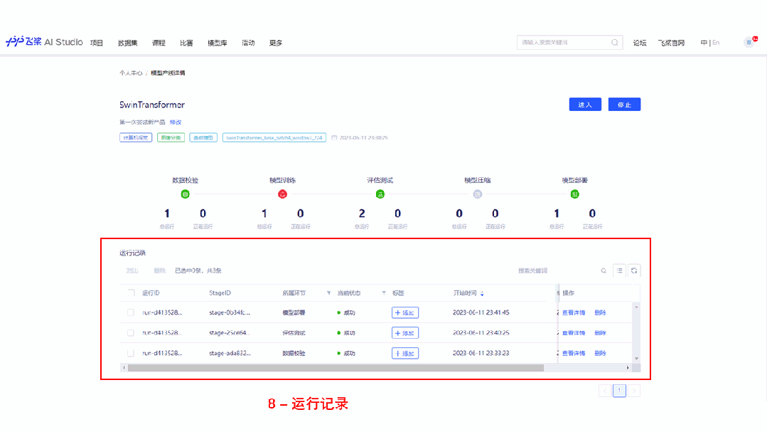 模型结果实时管理与对比,提供模型运行管理、参数配置和可视化评估能力。