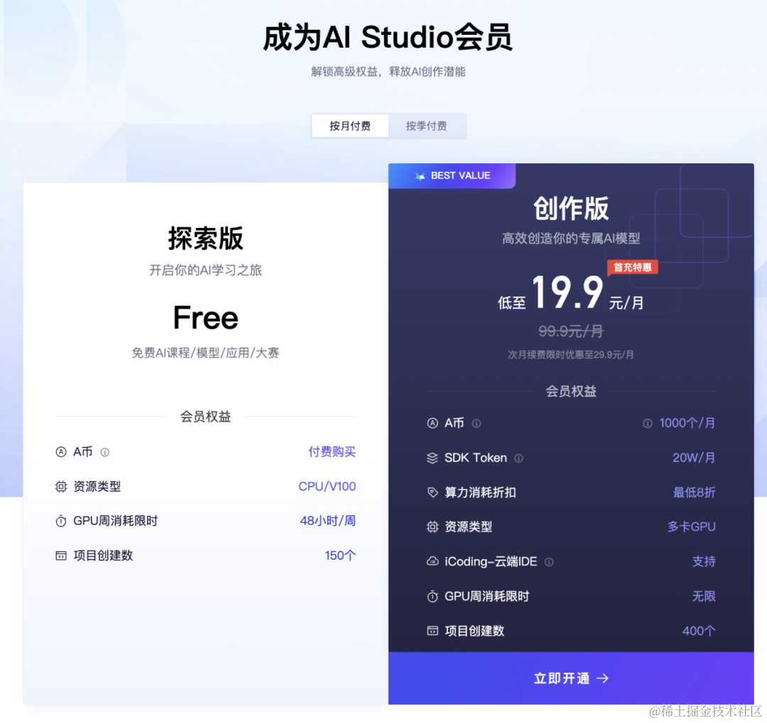 2023年,飞桨在开发套件能力基础上,充分结合大模型能力,正式在飞桨星河社区上线发布了低代码开发工具PaddleX,实现AI应用开发效果和效率的大幅提升。产品通过提供图形界面开发模式,将复杂的编程任务简化为简单易用的界面操作,进一步降低了AI技术的使用门槛。目前PaddleX已汇聚了40余个产业级精选模型,覆盖10大主流AI任务,支持云端和本地端离线使用。为了更好地保障开发者们在社区的体验,飞桨星河社区打造创作版会员权益体系,包含多种算力资源、算力消耗折扣、SDK Token、A100/多卡GPU、无限GPU周消耗等专属权益,覆盖AI模型开发、AI应用开发等多种场景。