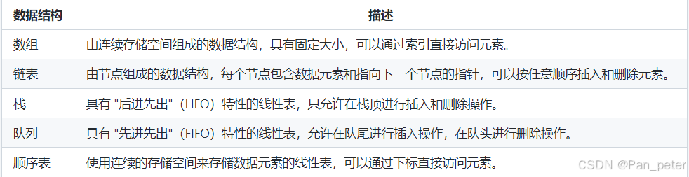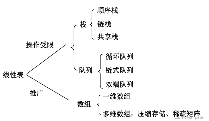 1、线性表 (栈、队列、链表、数组、矩阵、串)