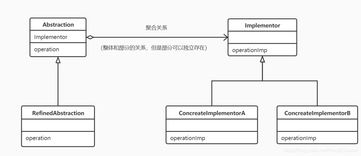 官方点的解释就是:【GOF95】桥梁模式的用意是"将抽象化(Abstraction)与实现化(Implementation)脱耦,使得二者可以独立地变化"。这句话有三个关键词,也就是抽象化、实现化和脱耦。