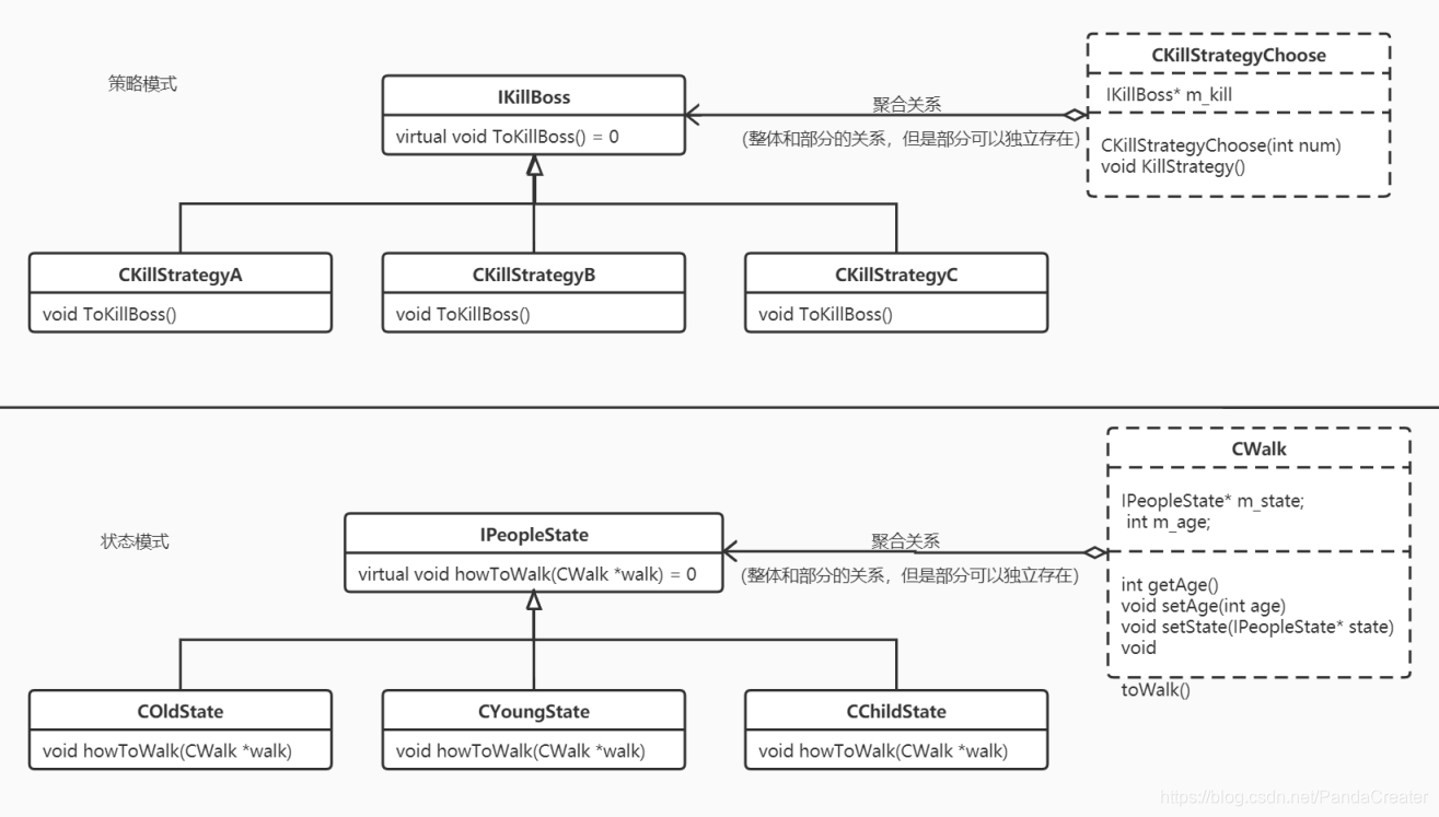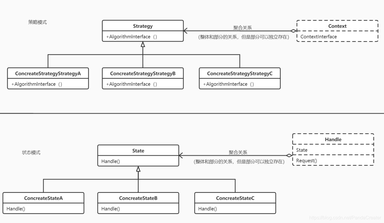 而策略模式和状态模式在实现、uml大致是相同的,不同的在于关注点不同: