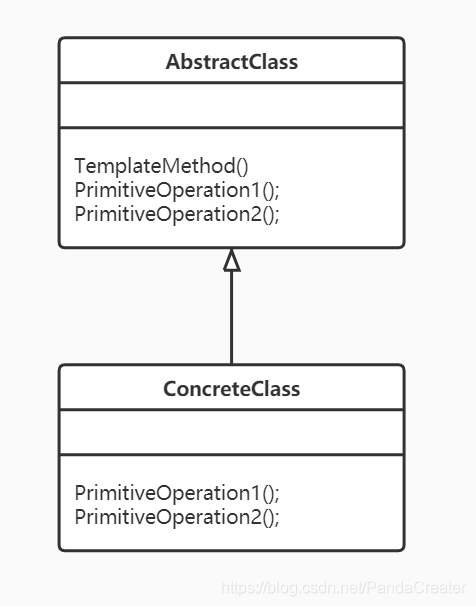 AbstractClass:这个就是模板类,里面提供了一个外部调用接口,让你能够运行这个模板,而这个接口是将需要的结构流程制定好,比如图中的TemplateMethod就是模板方法接口,而内部就是将1、2两个函数用特定的流程进行执行,完成需要完成的任务