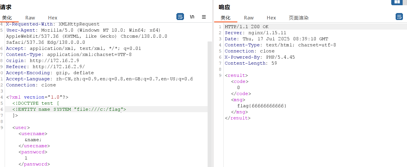 发现回显位置在账户名称上,且格式神似XML,尝试使用XML注入漏洞