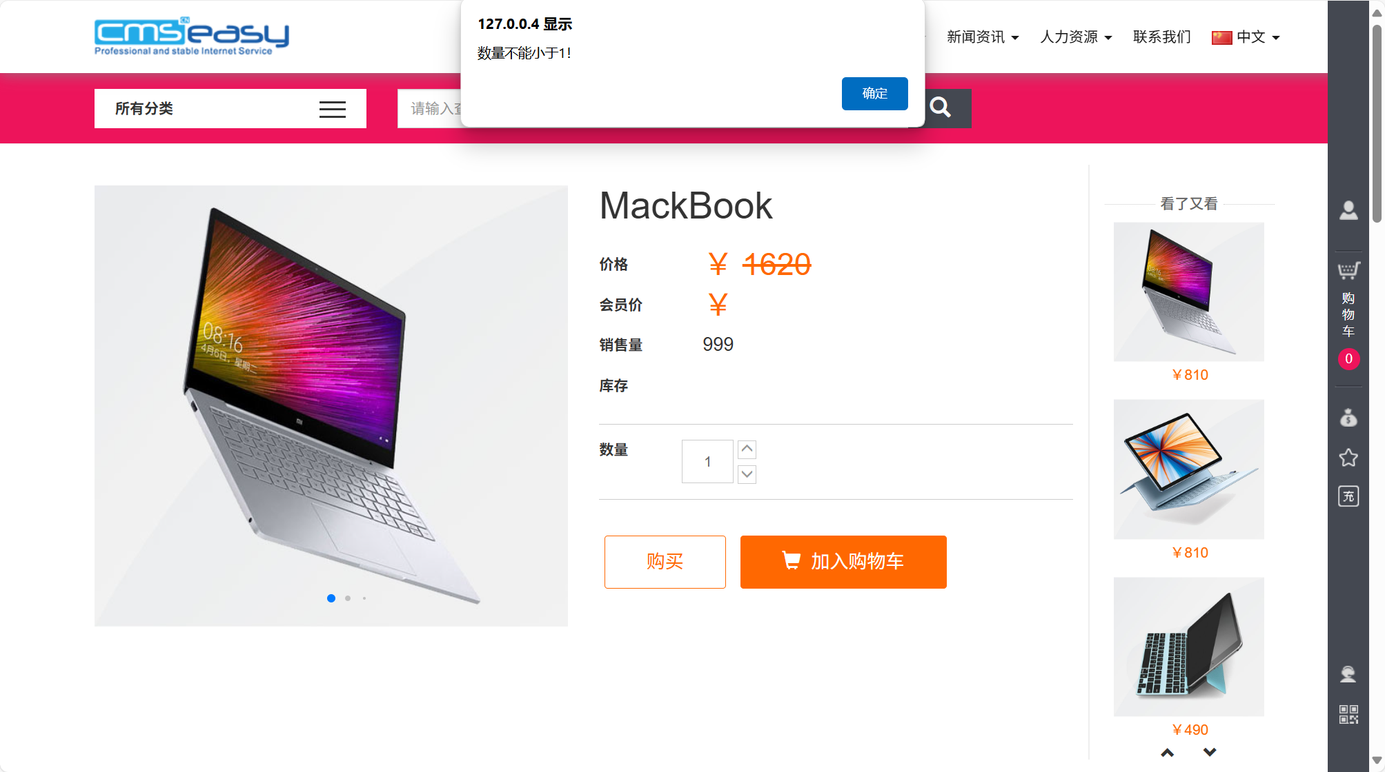 进入网站首页,注册登录,找到商品界面,发现不能直接更改数量,使用burp抓包