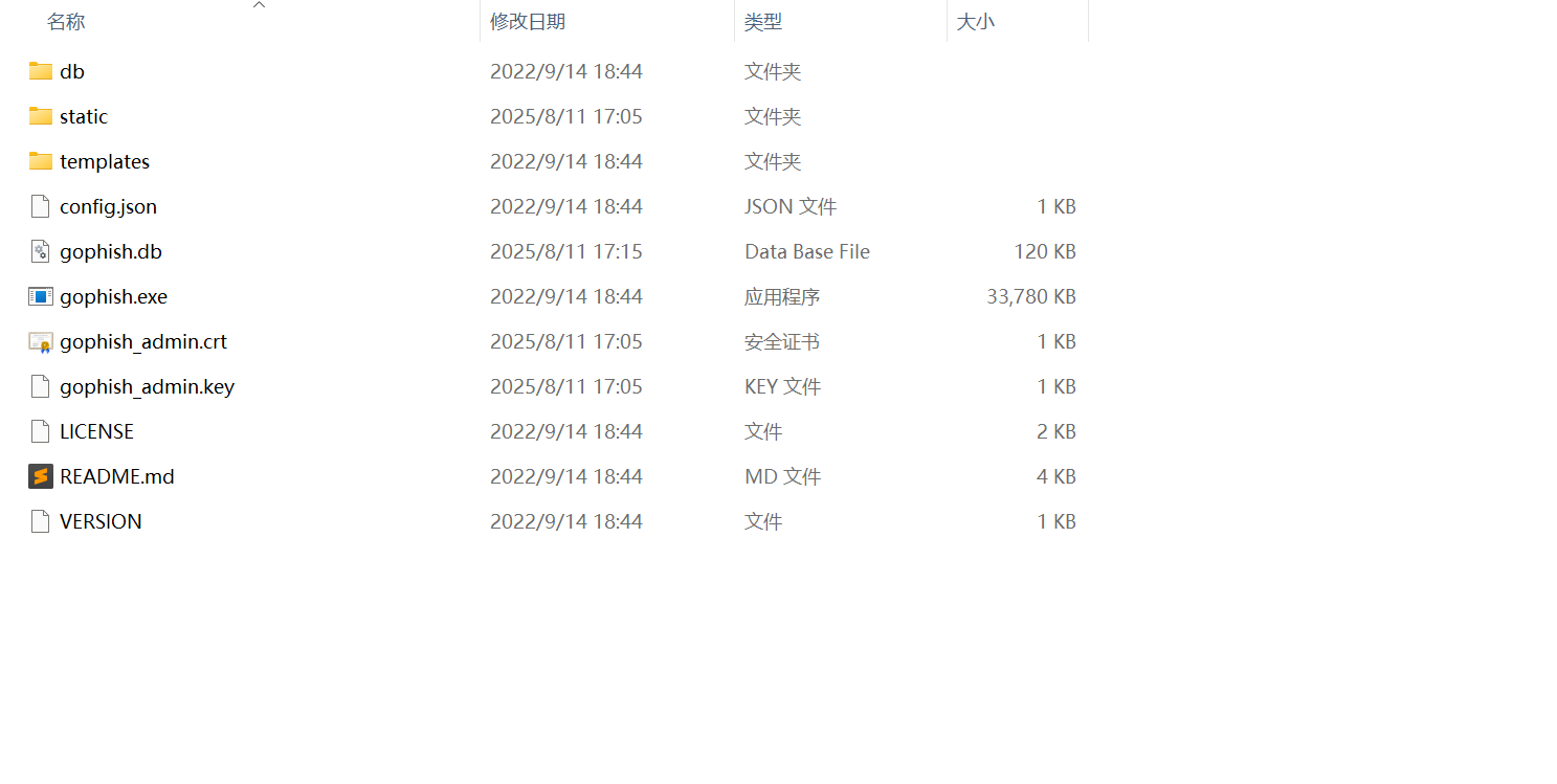 下载安装包:gophish-v0.11.0-windows-64下载完成后,使用压缩工具解压到文件夹中