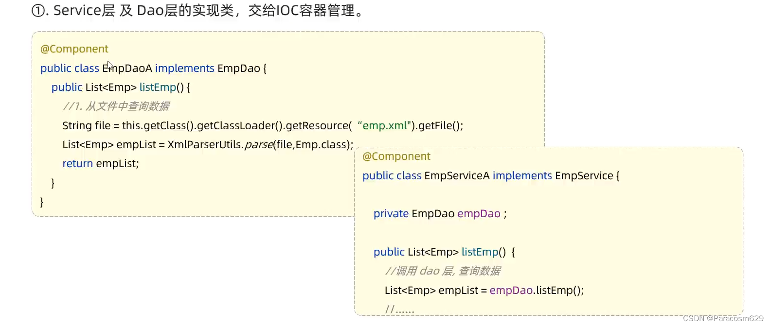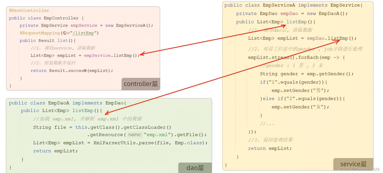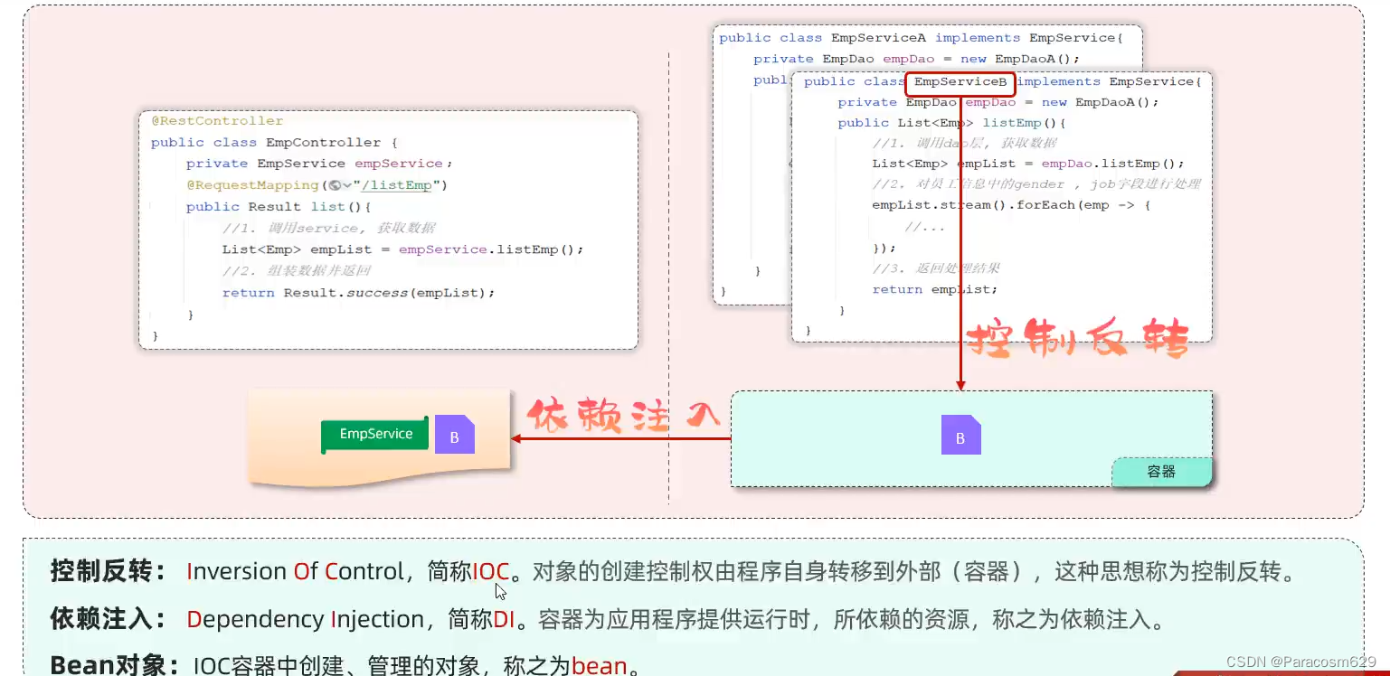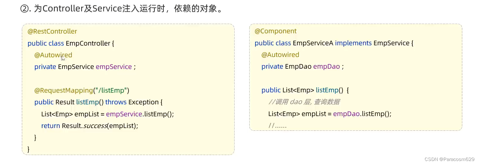 当我们在controller层调用了sevice层的对象时,那么我们就将controller层与service层耦合在了一起,这样如果service层的代码出现问题之后,我们不仅需要改动service层的代码,还要对controller层的代码进行维护,这样我们的效率只会大大降低