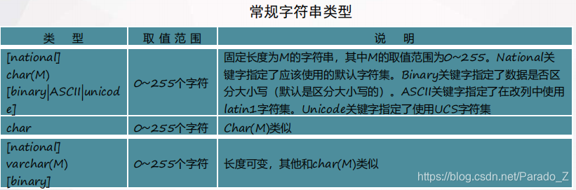 字 符 串 类 型 可 以 分 为 3 类 : 普 通 的 文 本 字 符 串 类 型 ( C H A R 和 VARCHAR)、可变类型(TEXT和BLOB)和特殊类型(SET和ENUM)。它们之 间都有一定的区别,取值的范围不同,应用的地方也不同。
