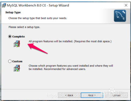 这里选择安装类型,学习的话可以直接选择【Complete】也就是完全安装,如下图: