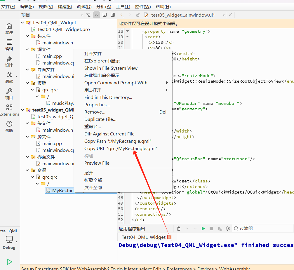 第六步:配置QQuickWidget 将QML文件路径写进去