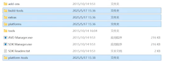 接下来点击SDK Mangaer.exe 安装,不过就需要下面这几个文件我在腾讯微云里面有,解压后将android_sdk_extra.zip解压到SDK工具包目录里面就可以了