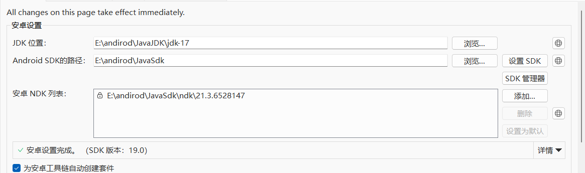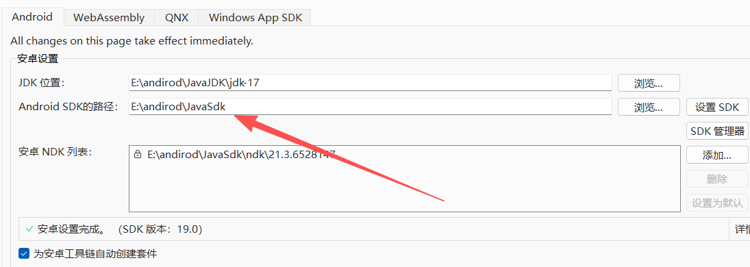 我们将JDK位置和Android SDK路径设置好,然后设置SDK,它会自己开始下载