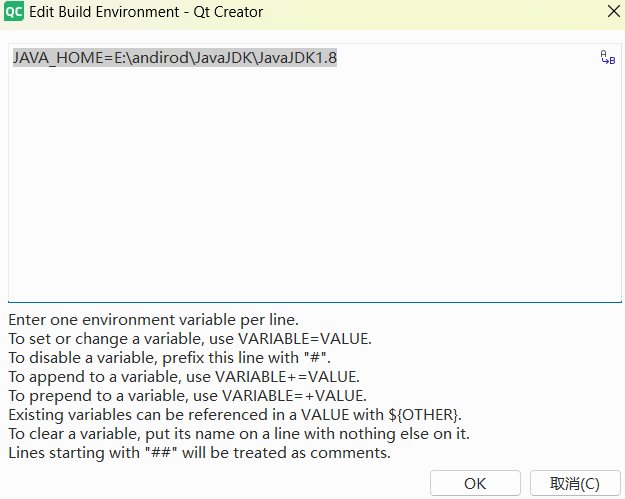 输入JAVA_HOME=E:\andirod\JavaJDK\JavaJDK1.8