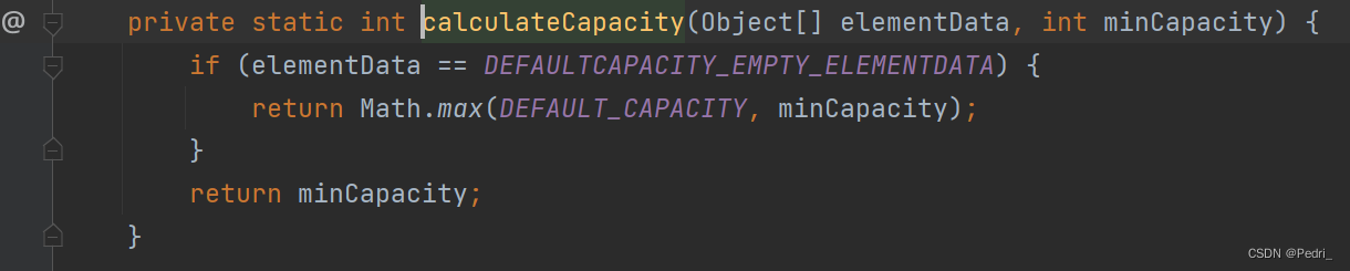 该方法确定minCapacity,第一次扩容为10。专门处理第一次添加元素。