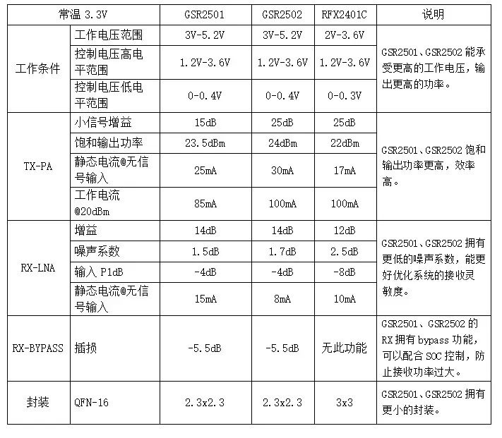 GSR2501和GSR2502作为一款专为IoT优化的射频前端模组芯片,其性能优势与设计特点体现在以下方面:
