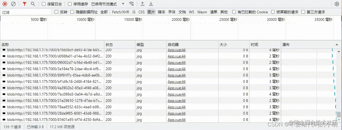 成功稳定连接后那么恭喜你完成第一步了,接下来就是获取对端发来的照片流了,使用socket.onmessageapi用来接收对端消息,需要转一下json,因为发送的数据照片流很快,控制台直接刷屏了,所以简单处理一下。收到照片流把blob格式处理一下再使用window.URL.createObjectURL(blob)赋值给img即可。