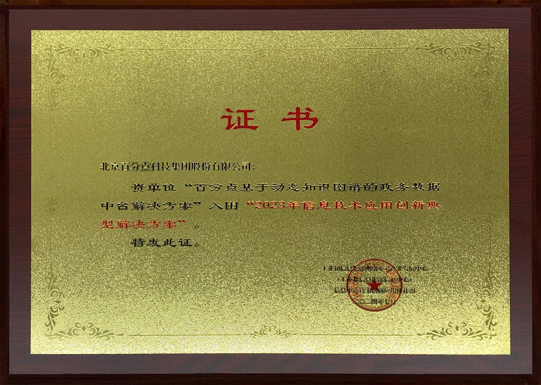 近日,在工业和信息化部网络安全产业发展中心主办的“2024 信息技术应用创新发展大会”上,发布了一系列技术水平先进、应用效果突出、产业带动性强的典型方案,百分点科技“基于动态知识图谱的政务数据中台解决方案”入选“2023年信息技术应用创新典型解决方案”。