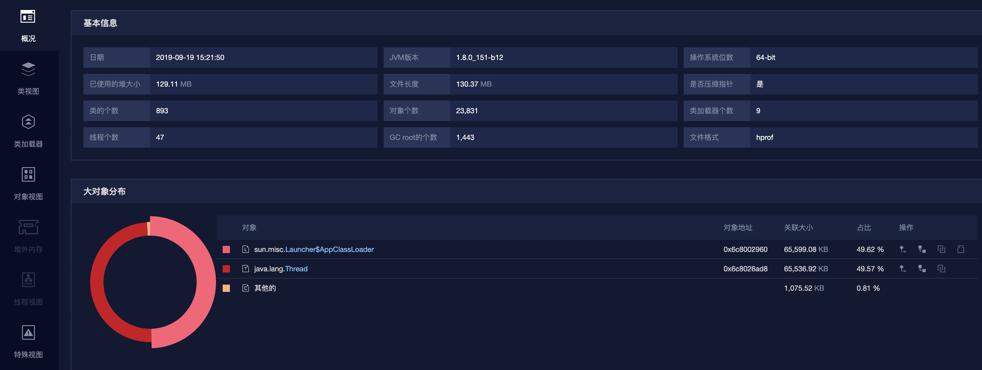 MAT 有两列显示对象大小,分别是 Shallow size 和 Retained size,前者表示对象本身占用内存的大小,不包含其引用的对象,后者是对象自己及其直接或间接引用的对象的 Shallow size 之和,即该对象被回收后 GC 释放的内存大小,一般说来关注后者大小即可。对于有些大堆 (几十 G) 的 Java 应用,需要较大内存才能打开 MAT。通常本地开发机内存过小,是无法打开的,建议在线下服务器端安装图形环境和 MAT,远程打开查看。或者执行 mat 命令生成堆索引,拷贝索引到本地,不过这种方式看到的堆信息有限。