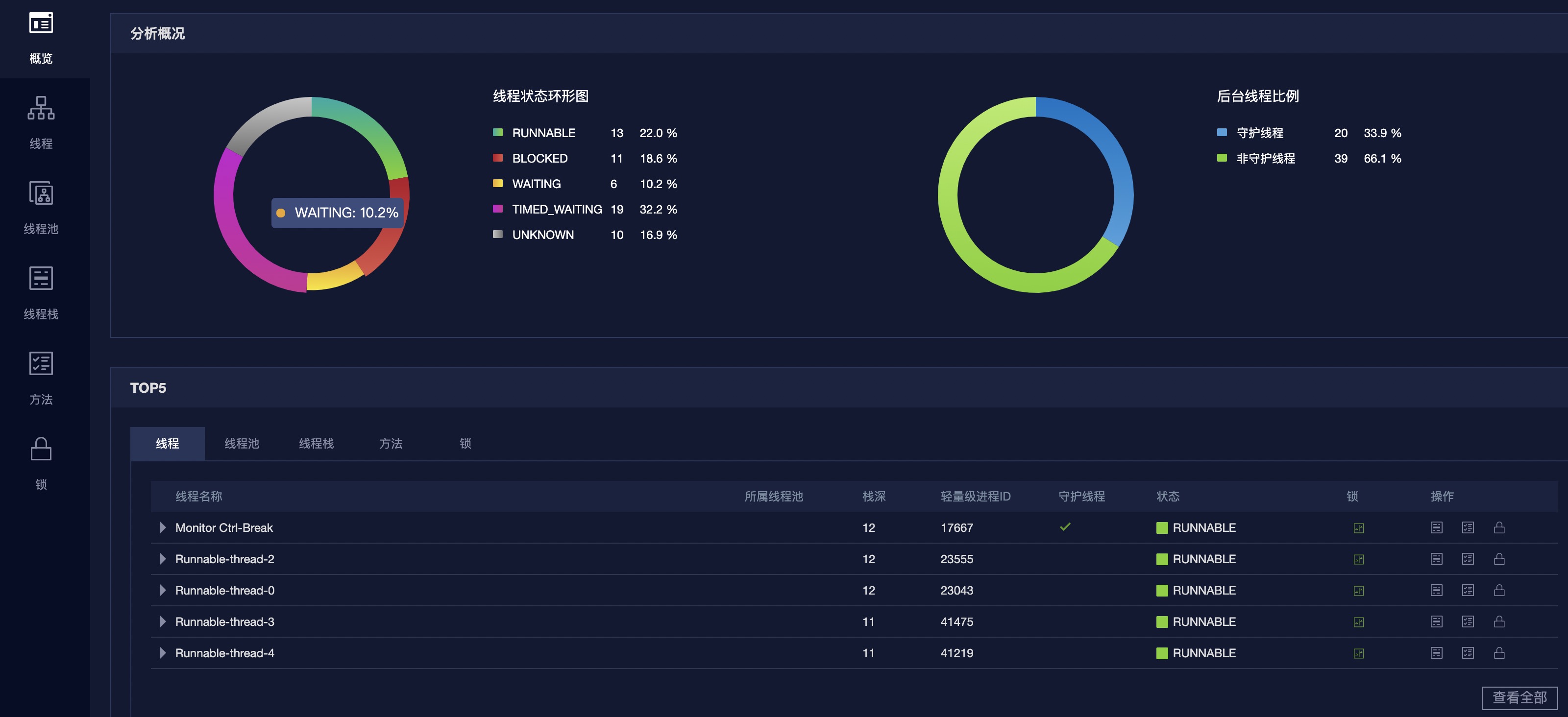 - 应用层需要理解代码逻辑,通过 Java 线程栈定位有问题代码行等;
