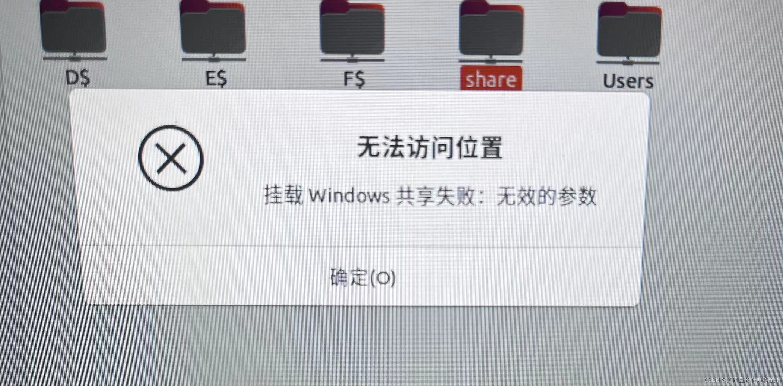 ubuntu通过“smb://IP地址”方法访问windows共享失败,无法进入,如图: