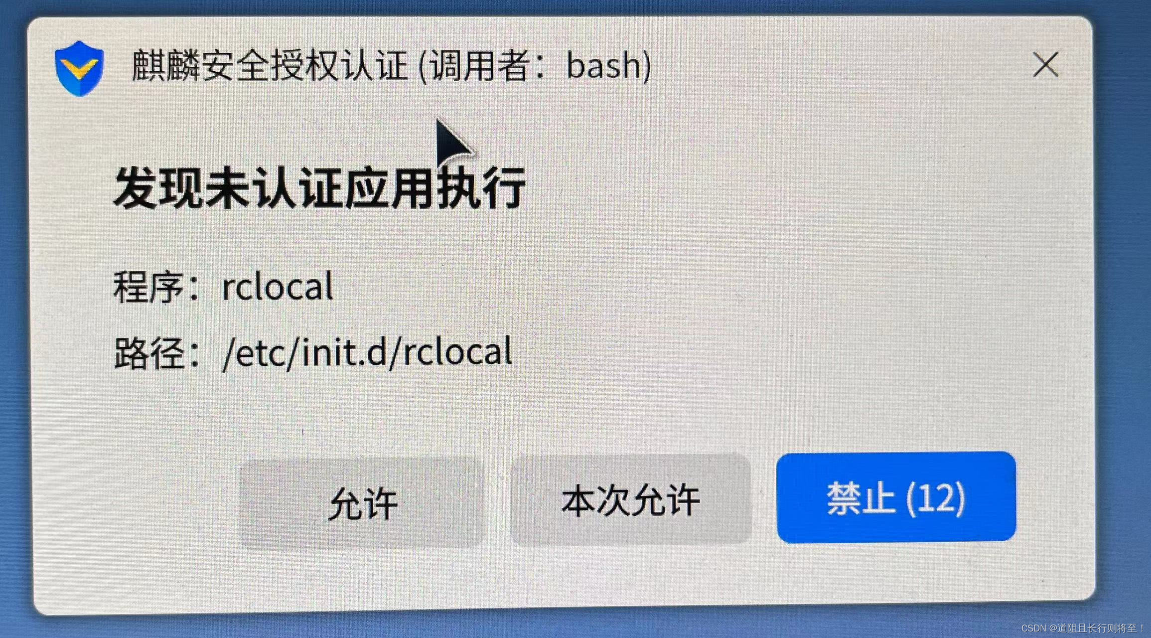 早期我以为Ubuntu通用修改MAC地址的方法不适用于银河麒麟V10,直到我执行了一下脚本,弹出如下弹窗,我才恍然大悟,原来在银河麒麟V10中,执行脚本需要额外授权,默认禁用。