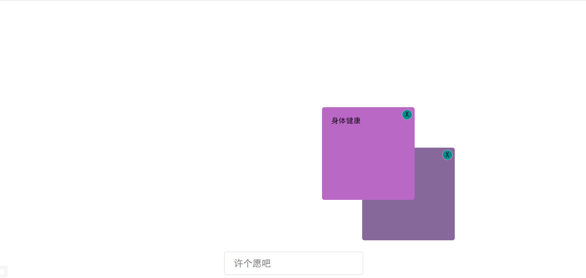上次学明白了拖拽那现在就该整个大的了,可拖拽可删除也有键盘事件的许愿墙.