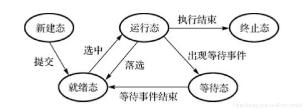 运行态→终止态:进程自然结束,或出现无法克服的错误,或被操作系统终结,或被其他有终止权的进程终结。