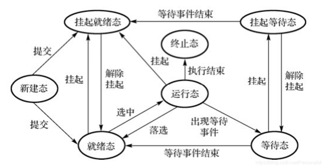 终止态:终止态进程已经终止,不再参与处理器竞争,但是进程尚未退出主存。