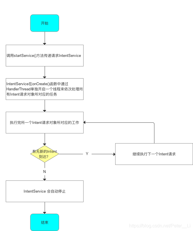 如果启动IntentsService多次,那么每个耗时操作则是以队列的方式在IntentsService的onHandleIntent回调方法中依 次执行,执行完自动结束。