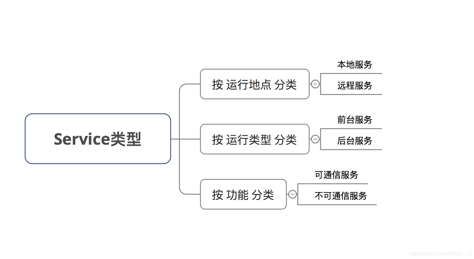 Service可按照地点、运行类型、功能进行分类,具体如下: