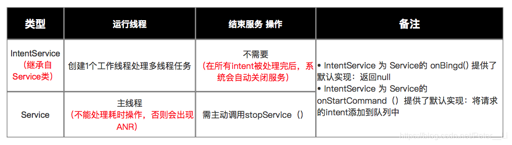 此处主要讲解IntentService与Service(服务)、Thread(普通线程)的区别。