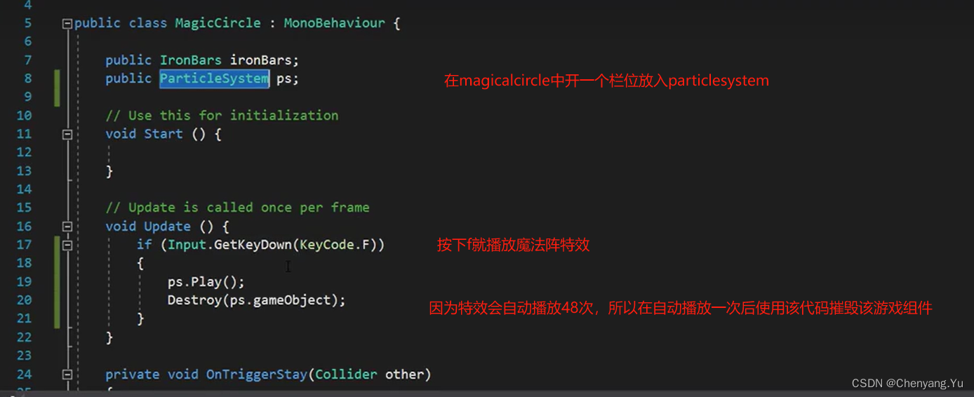 在magicalcircle中开一个栏位放入particlesystem
