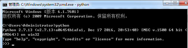 安装完成后,cmd下输入python,如下证明安装成功,并配置环境变量如:D:\Python27和D:\Python27\Scripts(https://jingyan.baidu.com/article/48206aeafdcf2a216ad6b316.html)