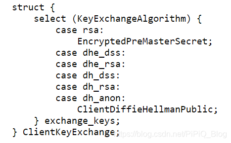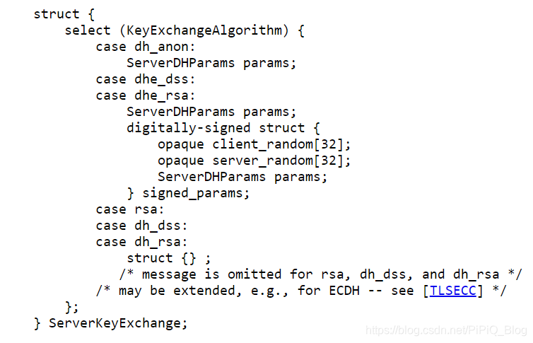 消息的选择取决于选择的密钥交换方法。有关 KeyExchangeAlgorithm 的定义,请参阅第 7.4.3 节。