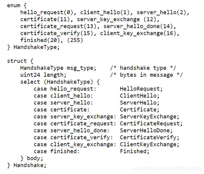 注意:ChangeCipherSpec 消息、警报和任何其他记录类型都不是握手消息,也不包括在哈希计算中。此外,握手哈希中省略了 HelloRequest 消息。