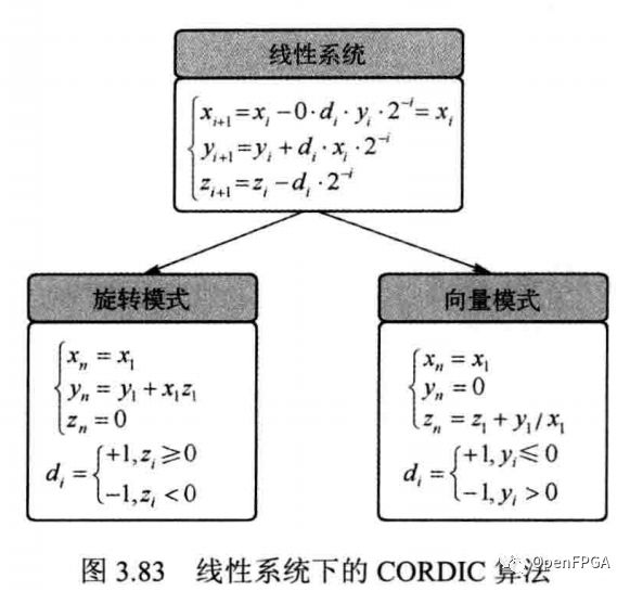 线性系统下的 CORDIC 算法亦有旋转模式与向量模式, 如图 3.83 所示。 其中, 旋转模式解决了乘法计算问题, 向量模式解决了除法计算问题。