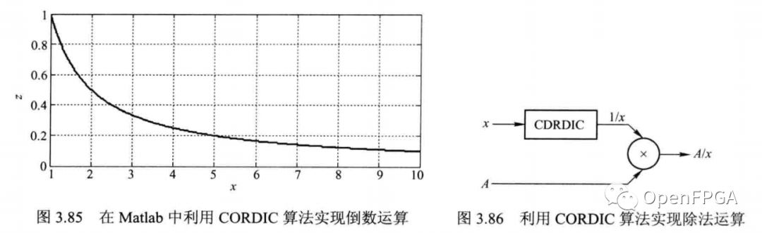 向量模式下, 可利用 CORDIC 算法实现除法运算, 要求|y1/x1|≤1 即 |y1|≤ |x1|且x1>1 。若令y1=1,x1>1,z1=0,则可以获得x1>1的倒数1/x1>1,如图3.85所示。