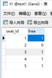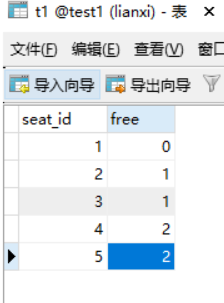 有张表t1,表结构如图,0 表示座位没人,1表示座位有人,查询出座位是连续的且没有人的seat_id