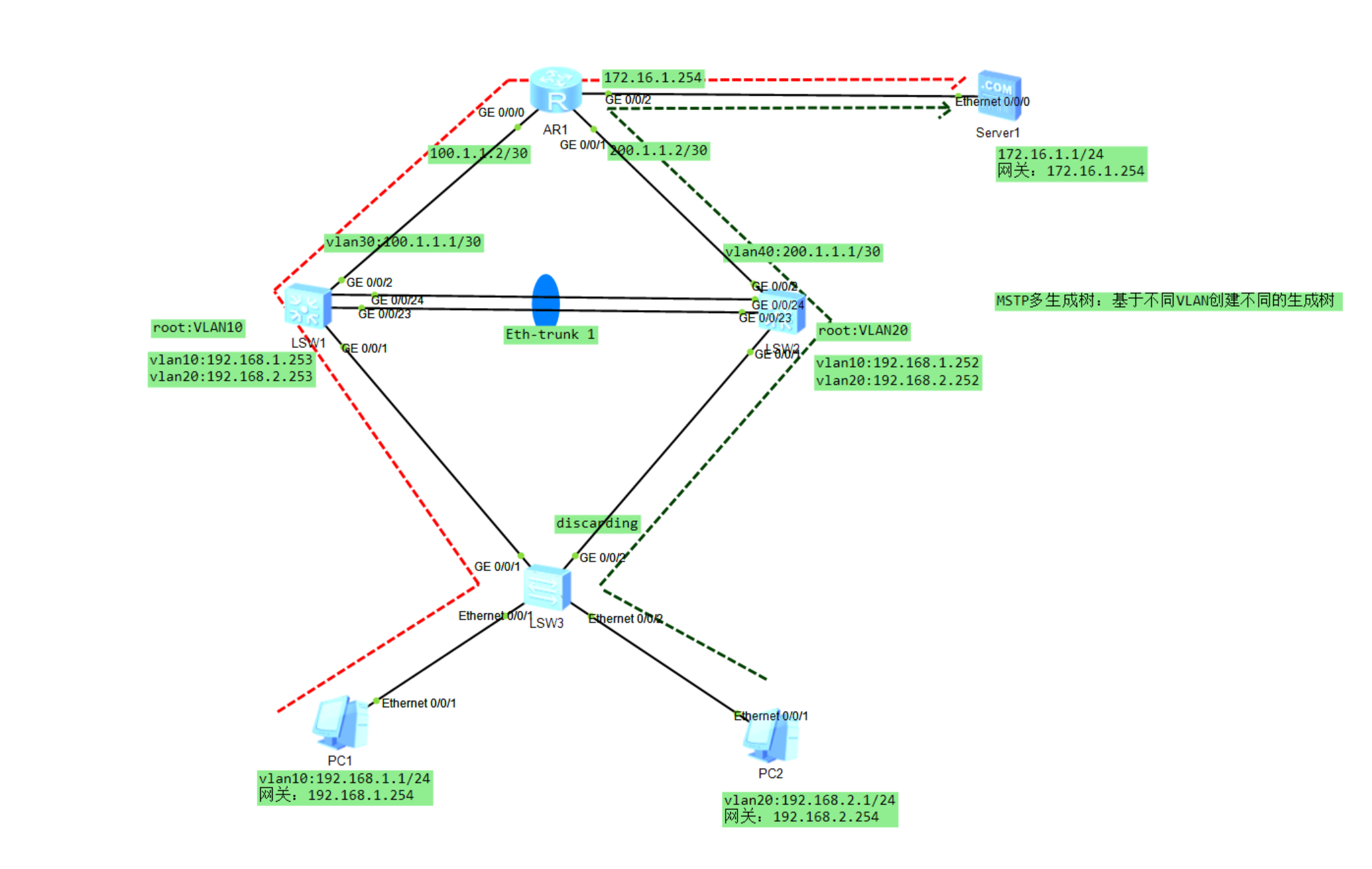 设置LSW1为vlan10的主根,LSW2为vlan10的备根