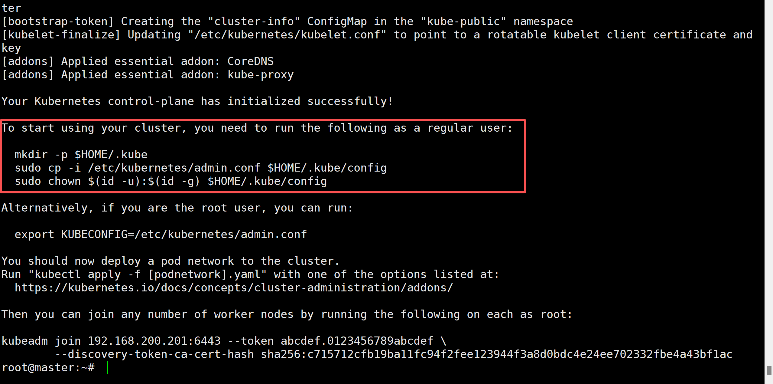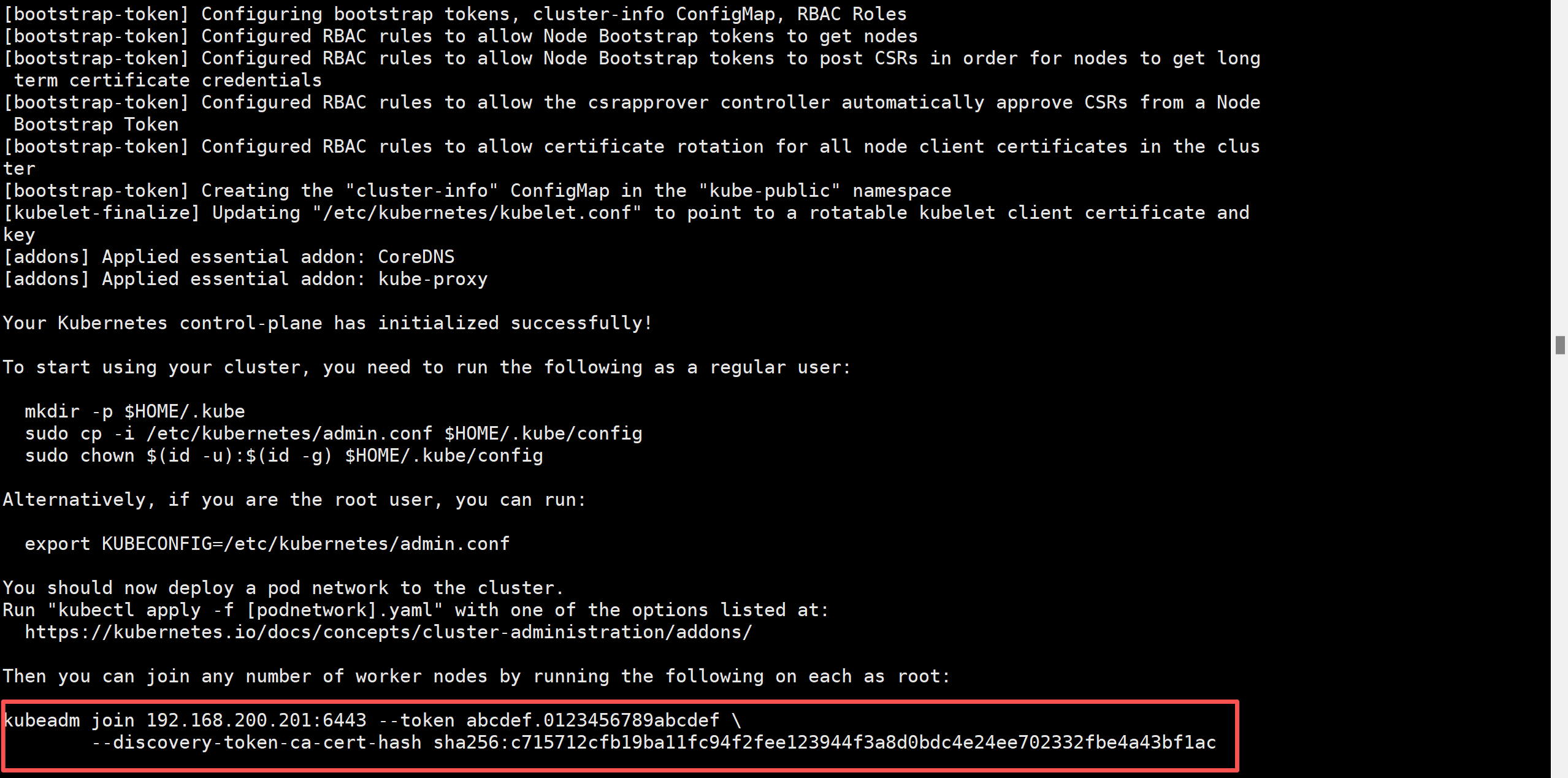 kubeadm join 192.168.200.201:6443 --token abcdef.0123456789abcdef \