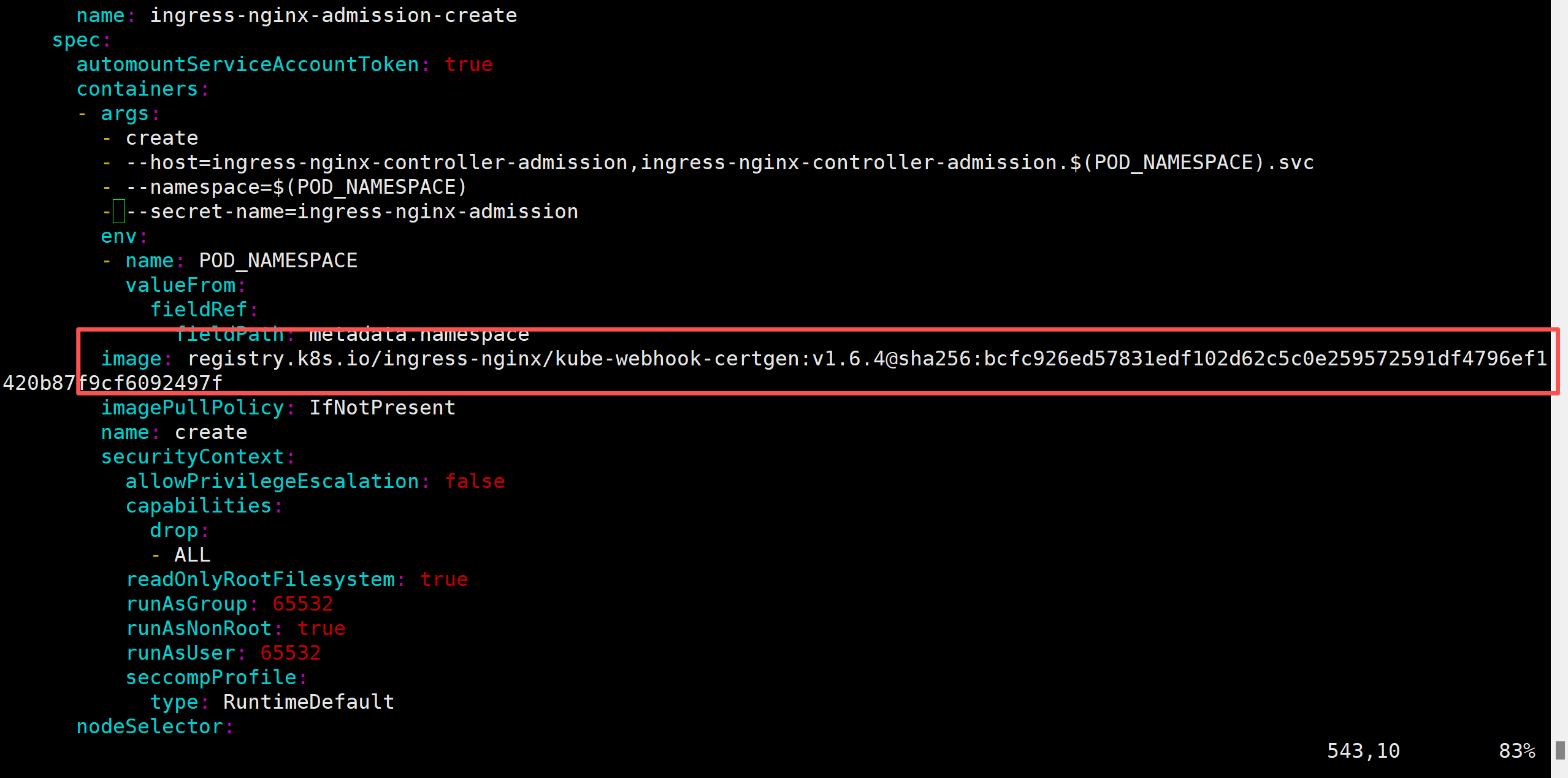 sed -i "s|registry.k8s.io/ingress-nginx/kube-webhook-certgen:v.*|registry.cn-hangzhou.aliyuncs.com/google_containers/kube-webhook-certgen:v1.6.4|" nginx_ingress.yaml
