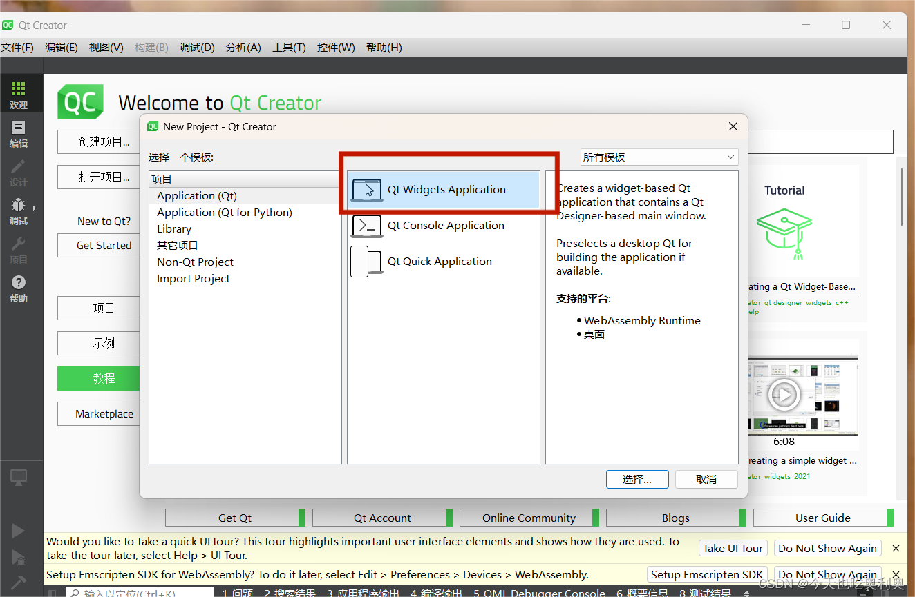 本文介绍了Qt在Linux桌面环境、WPS Office等软件中的应用,并详细阐述了如何创建第一个Qt程序,包括选择Qt Widgets Application项目类型、命名规范、qmake的使用以及项目配置过程。
