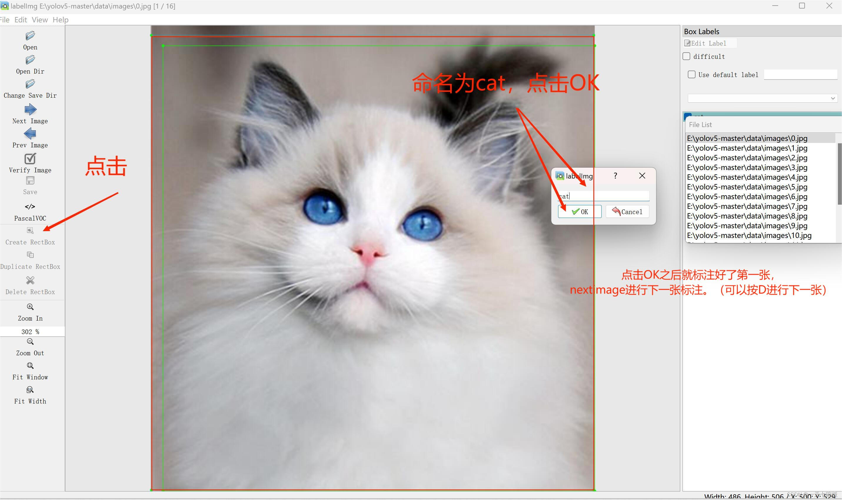 classes = ['cat'] # 这里改为你要训练的标签,否则会报错。比如你要识别“hand”,那这里就改为hand