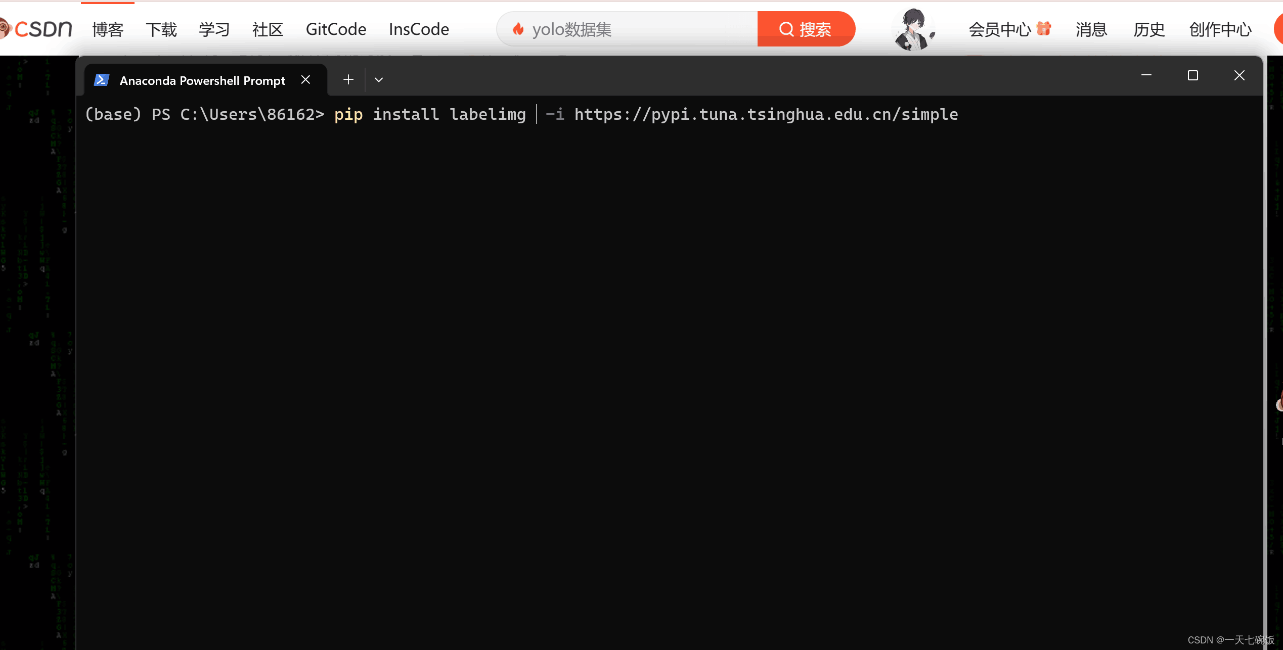 打开终端输入 pip install labelimg -i https://pypi.tuna.tsinghua.edu.cn/simple,点击回车。嫌慢的可以加上镜像网站。