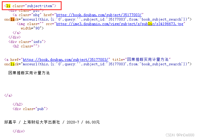 打开网页源码,发现每本书籍的信息都分别储存在标签<li class="subject-item"><li>内