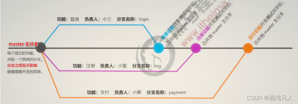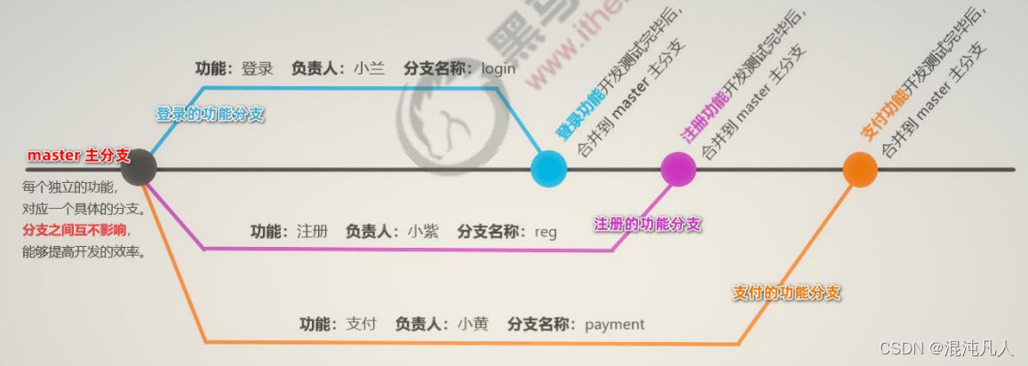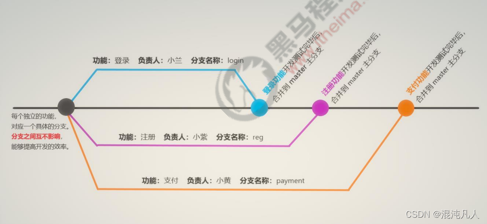 由于程序员不能直接在 master 分支上进行功能的开发,所以就有了功能分支的概念。