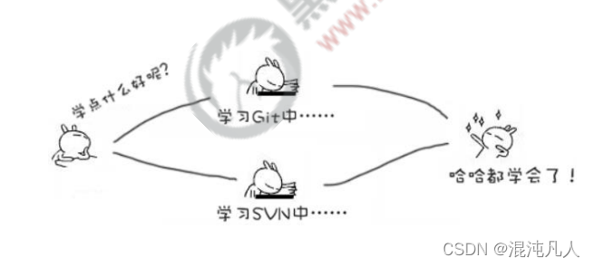 分支就是科幻电影里面的平行宇宙,当你正在电脑前努力学习Git的时候,另一个你正在另一个平行宇宙里努力学习SVN。如果两个平行宇宙互不干扰,那对现在的你也没啥影响。不过,在某个时间点,两个平行宇宙合并了,结果,你既学会了Git又学会了SVN!