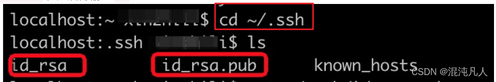 打开终端输入 cd ~/.ssh ,然后再输入 ls