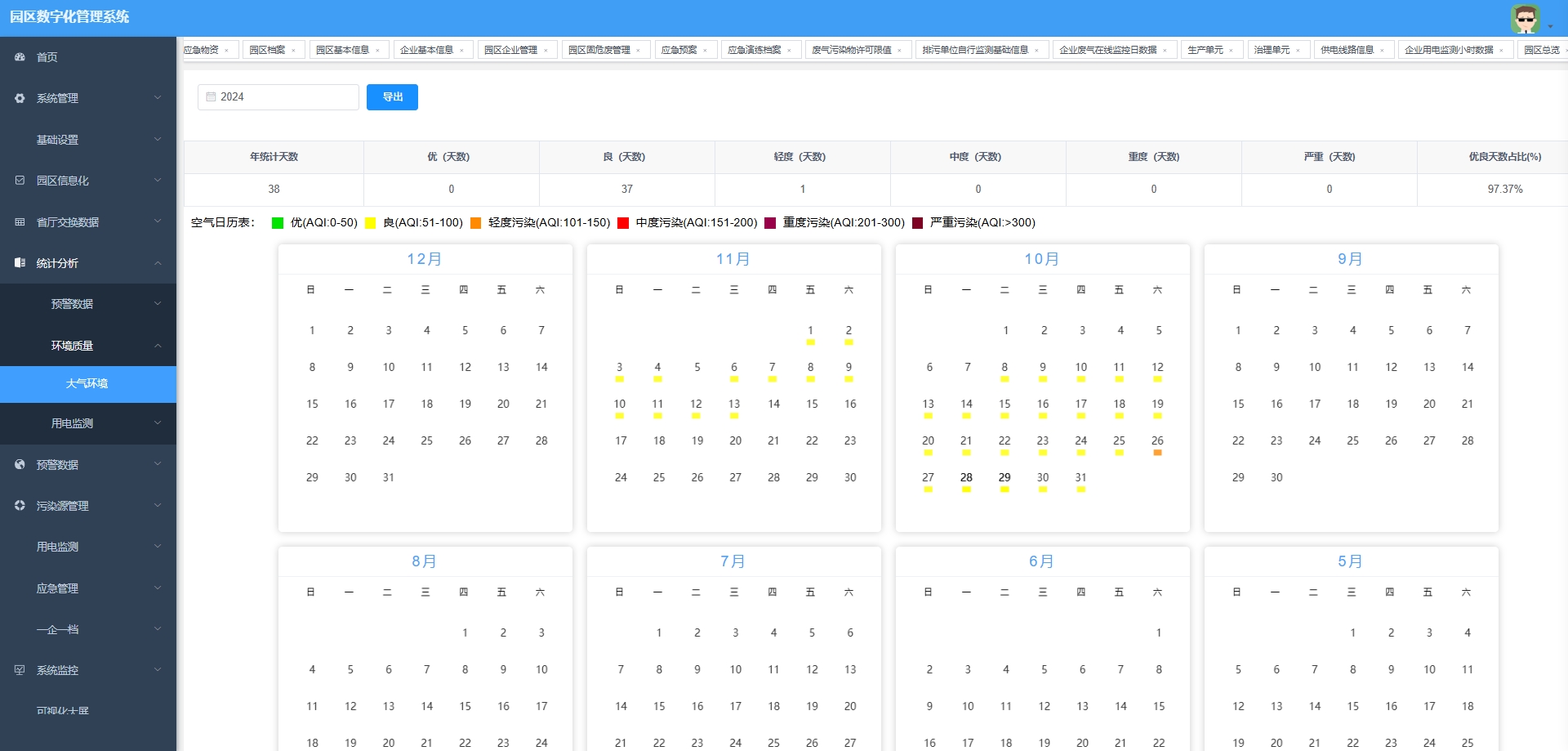 环境质量统计:对园区环境质量进行统计分析。